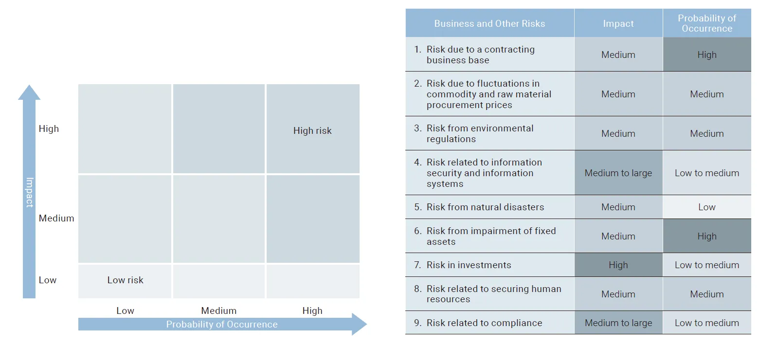 Risk Map In selecting the significant risks, the various risks are evaluated based on the two axes of impact and probability of occurrence.