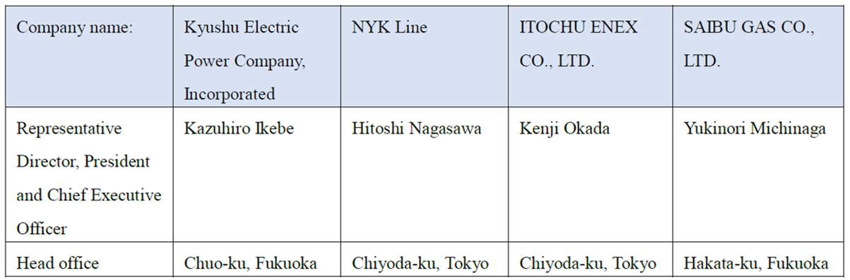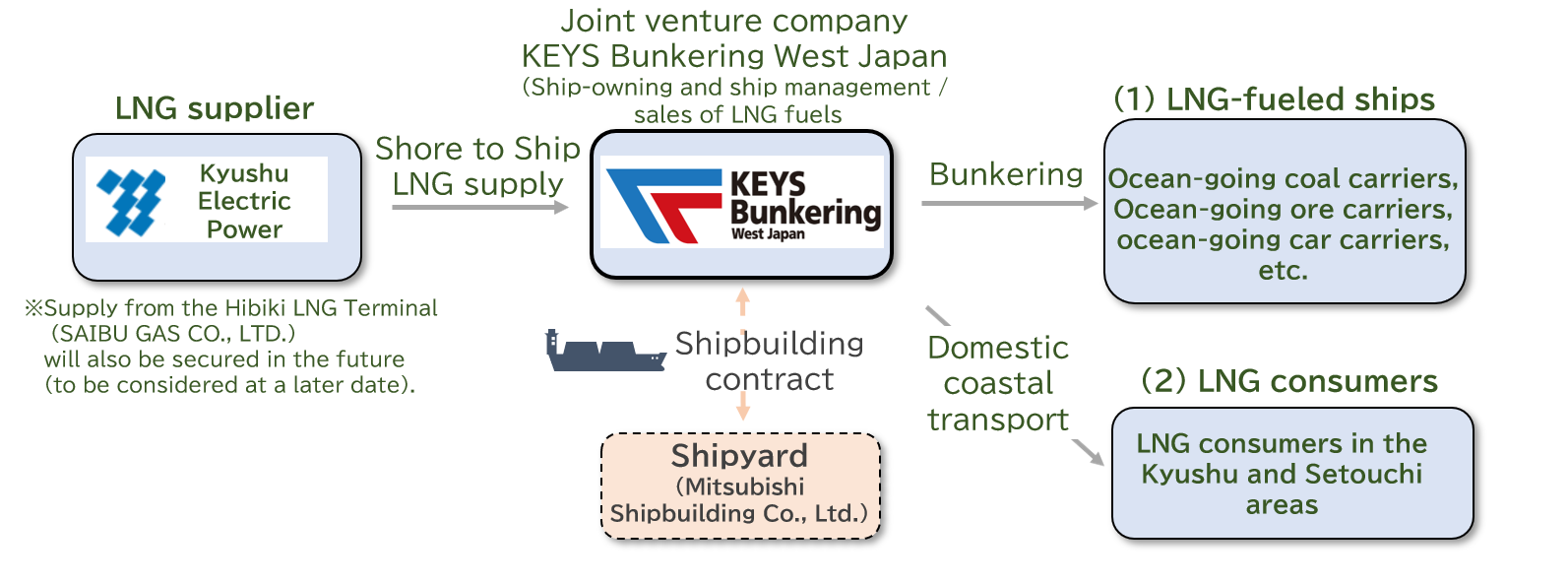 Kyushu Electric Power Co., Inc., NYK Line, ITOCHU ENEX CO., LTD., and SAIBU GAS CO., LTD.(hereinafter "the parties") have established a joint venture company, KEYS Bunkering West Japan Co., Ltd. ("KEYS"), in February this year and have performed considerations with the goal of beginning the operation of the liquefied natural gas ("LNG") fuel supply business for ships in Japan’s Kyushu and Setouchi regions in the spring of 2024.1